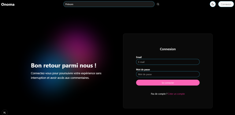 Onoma est un projet étudiant élaboré à deux, il s’agit d’une application full‑stack qui permet d’explorer et de visualiser l’évolution des prénoms en France, par année et par département, avec une carte interactive, des graphiques et un système de commentaires. Le frontend est développé avec Next.js (App Router) et TypeScript pour une expérience fluide et moderne, avec des composants UI réutilisables et un thème sombre L’API est en Symfony, sécurisée par JWT, avec Doctrine et un espace d’administration (EasyAdmin) pour gérer les utilisateurs, les prénoms, les départements, les statistiques et la modération. L’ensemble tourne dans des conteneurs Docker pour une mise en place fiable (app + base de données), et le CORS est configuré pour un dialogue propre entre le front et l’API.…